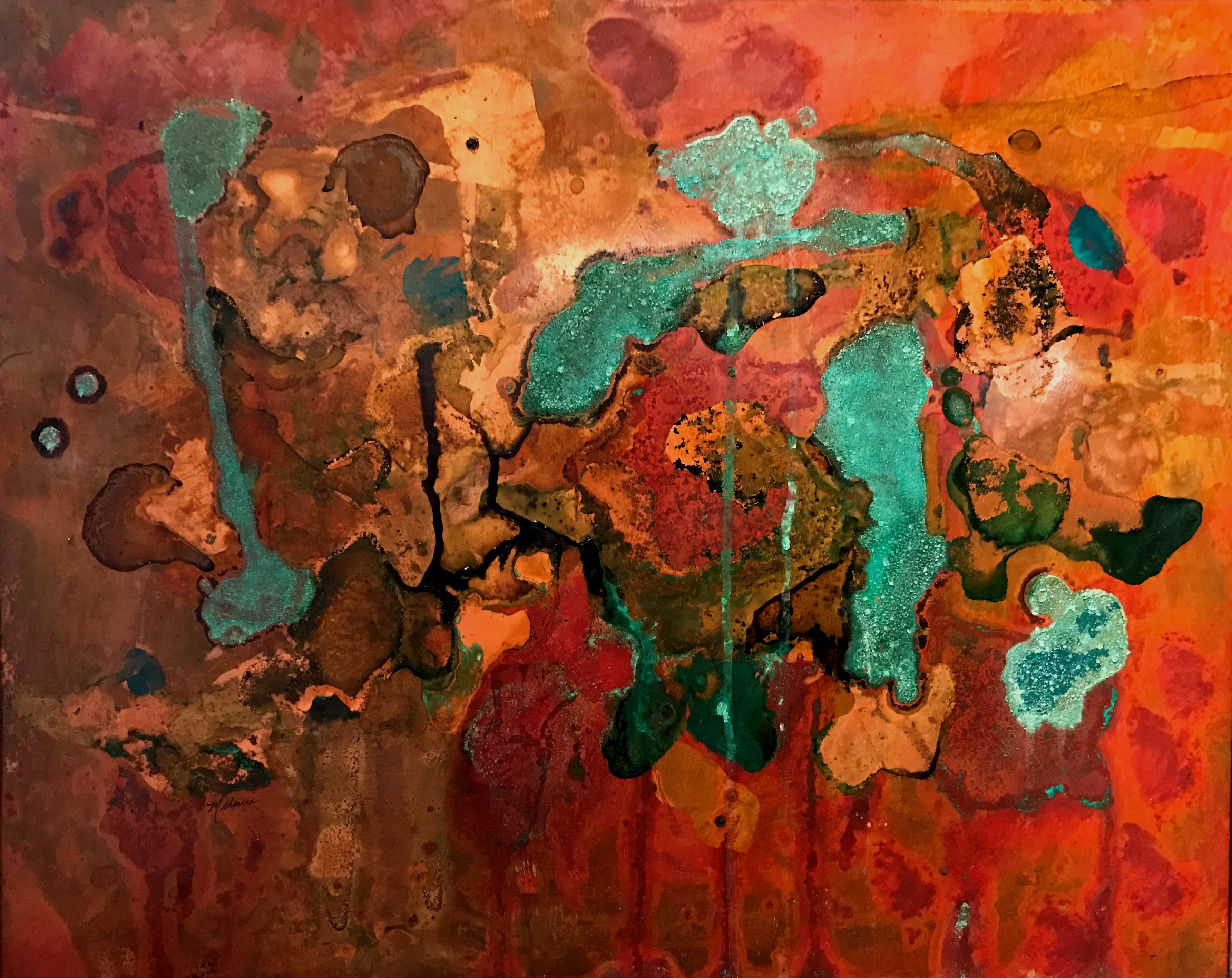 Distressed copper , Framed. 20.5″ x 24.5″ $495